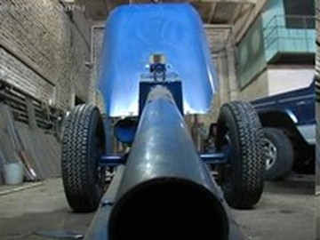 Для начала он присоединяет к ней шланги от компрессора, пушка набирает давление для выстрела. В гараже рядом с орудием – красные и синие газовые баллоны, токарные и сверлильные станки, обрезки труб. Камера, как в учебнике, фиксирует крупные планы артиллерийских деталей: щитовое прикрытие, механизм наводки, прицельное приспособление, противооткатное устройство, датчик давления, приемный газовый баллон. Все сделано добротно, на совесть.