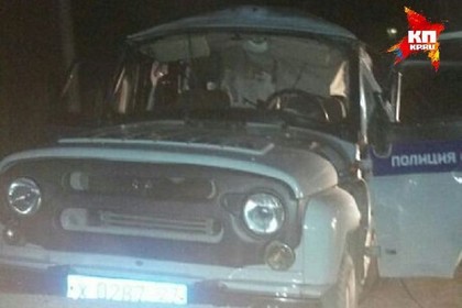 Взорванный новоургальцем патрульный УАЗ